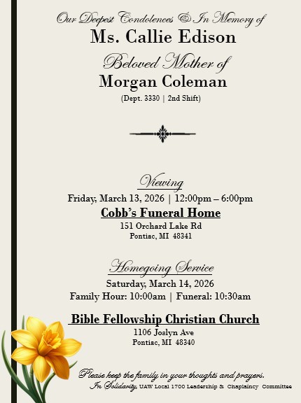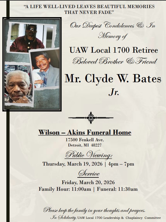 IN LOVING MEMORY OF UAW LOCAL 1700 RETIREE CLYDE BATES JR