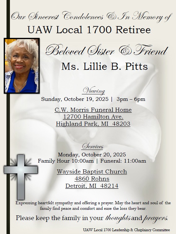 IN MEMORY OF UAW LOCAL 1700 RETIREE MS LILLIE PITTS